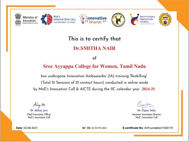 Innovation Activity Coordinator & IA : Mrs. B. S. Rakhi